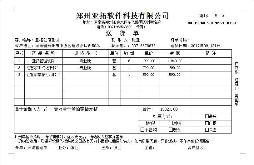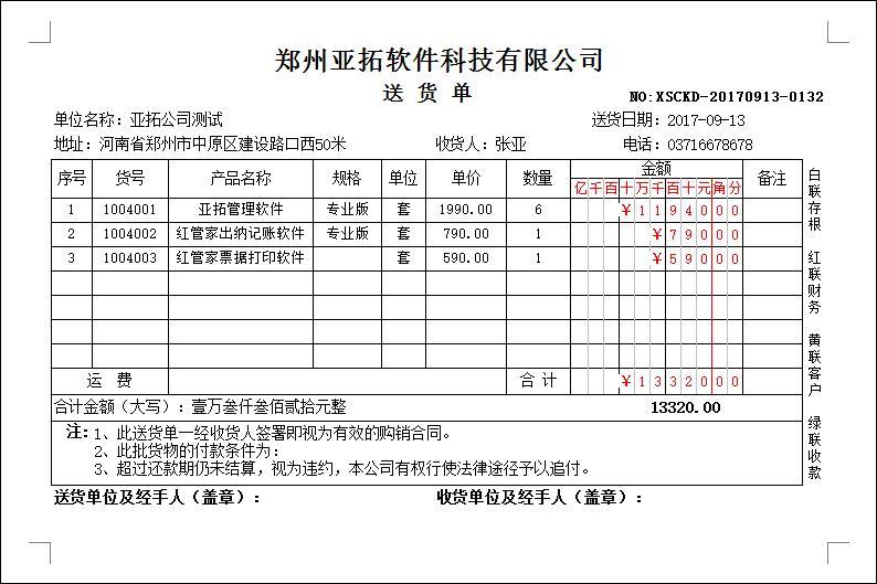 • 送貨單打印模版1301