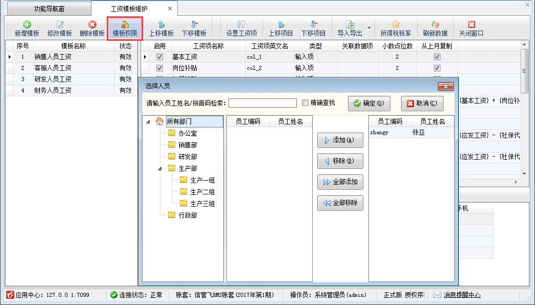 (5)啟用工資模板權限