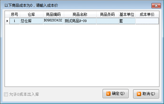 ????啟用此參數后,如果商品成本價為 0,軟件會給出提示,但允許繼續審核。如果不啟用此參數,則必須在彈出窗口中輸入成本價,才可以繼續審核。