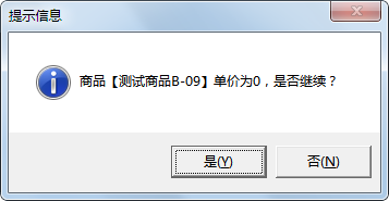 (2)銷售出庫單保存時商品單價為 0 提示