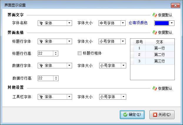 ????在功能導航窗點擊“系統管理”—》“界面顯示設置”可以打開界面顯示設置窗口,可以設置軟件界面文字、必填項、界面表格等顯示效果。