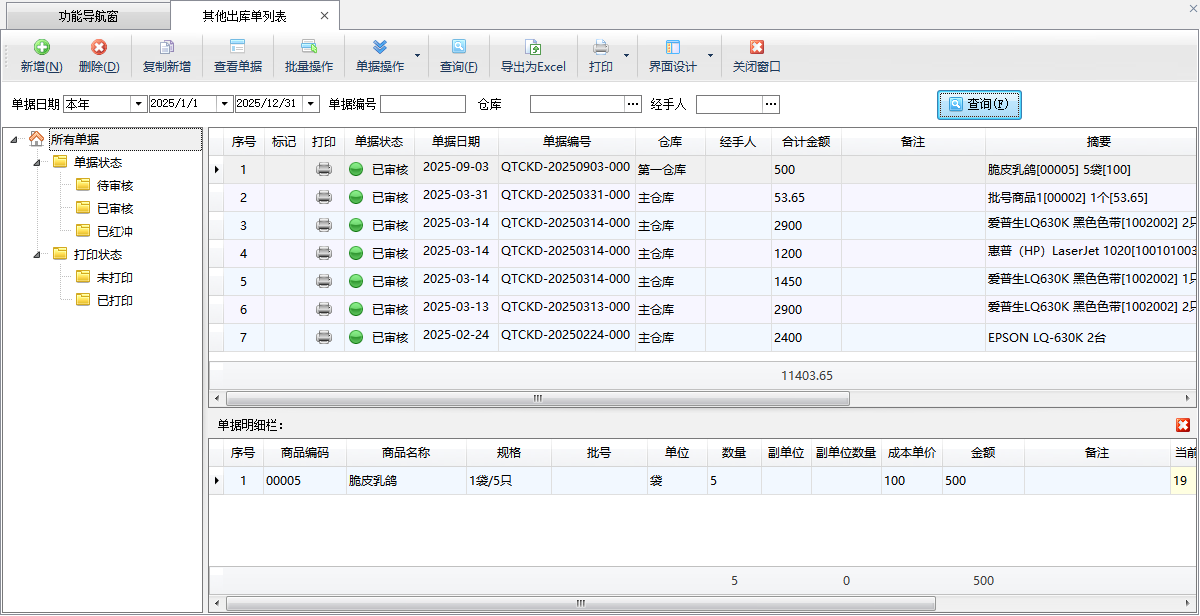 ????其他出庫單的操作與銷售出庫單基本一致,這里不再詳述。