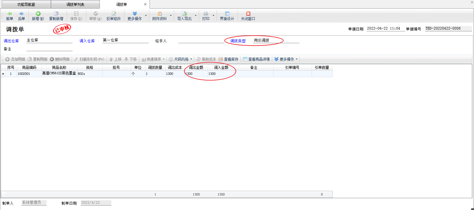 同價調撥:同價調撥單即移庫,是將商品從一個倉庫轉移到另一個倉庫的過程。同價調撥單不產生調撥費用,或調撥費用不計入商品成本。因此,同價調撥單不會影響公司的所有倉庫總庫存金額的變化。