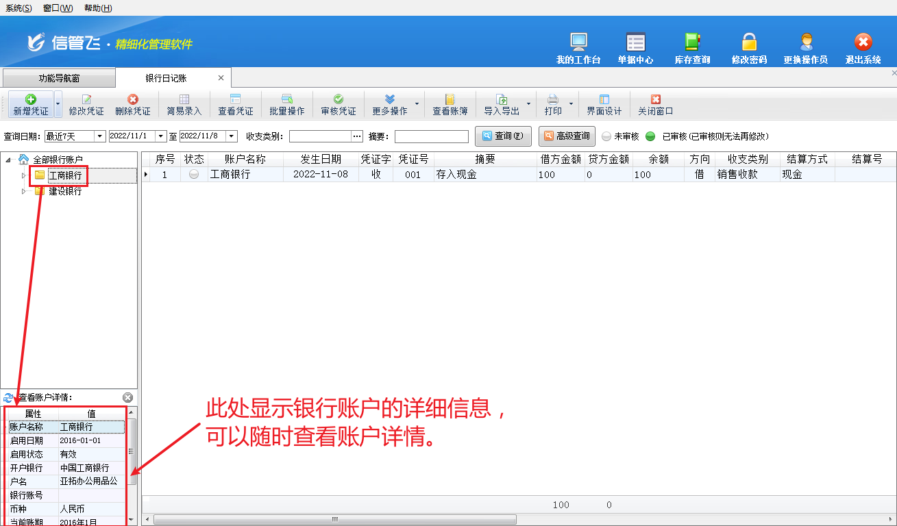 | 14 | 查看帳簿 | 點擊工具欄中的“查看帳簿”按鈕,可以打開并查看銀行帳簿報表。 |