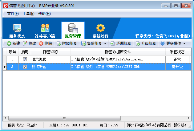附加賬套:可以將文件夾中的賬套數(shù)據(jù)文件附加進來,附加進來的賬套,客戶端可以連接。如果賬套數(shù)據(jù)文件的版本號較低,請升級賬套。