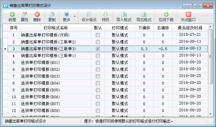 設置為默認格式:點“更多操作”—》“設置為默認格式”,可以將當前格式設置為默認格式,在單據窗口點“打印”—》“快速打印”時將使用默認打印格式進行打印輸出。
