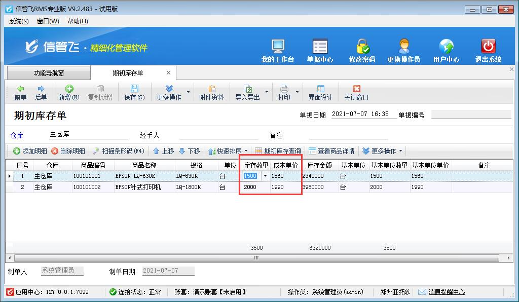 ????②如果已開賬,則只能對“期初庫存單”查看或反審修改,無法進行新增。