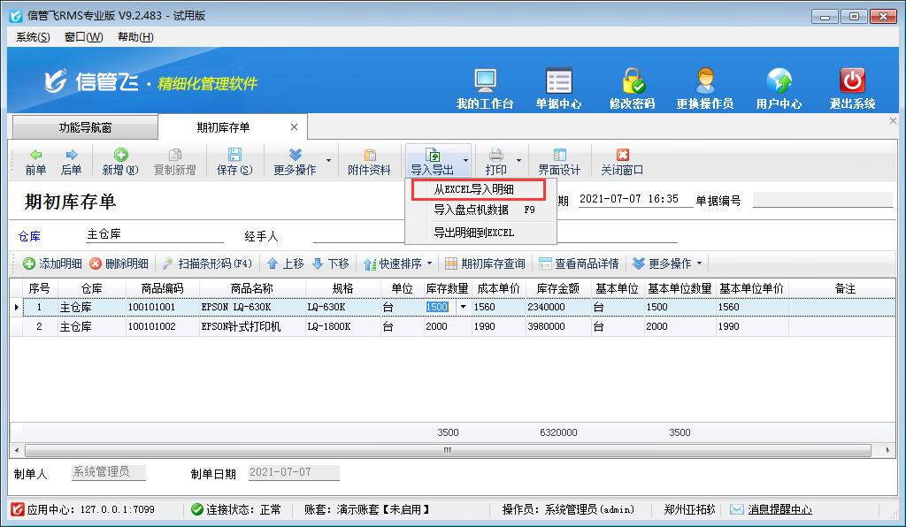 ????期初數據是指在軟件開賬日期之前的業務數據。期初庫存是軟件在開賬前需要先錄入好商品庫存信息。信管飛RMS星光版、標準版和專業版,信管飛倉庫管理軟件都包括“期初庫存單”,“期初庫存單”可以錄入不同倉庫、不同商品的期初庫存數量和成本單價等信息,實現了軟件在開帳前對期初庫存的高效管理。下面介紹一下進銷存管理軟件如何錄入商品期初庫存?