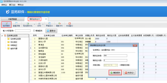 ????如果帳套已開賬,則只能查看和修改,無法進行新增。打開“期初應收應付”界面,單擊往來單位,選擇左上角的“修改期初”可以對當前單位進行修改期初應收應付款,默認期初日期為賬套啟用日期,輸入完后點擊“確定修改”即可。如下圖所示: