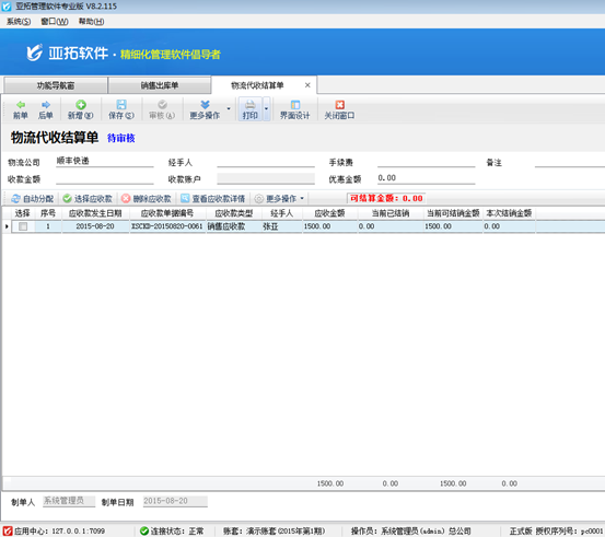 # 6.12.2 進(jìn)銷存軟件中物流代收及其結(jié)算功能的使用方法