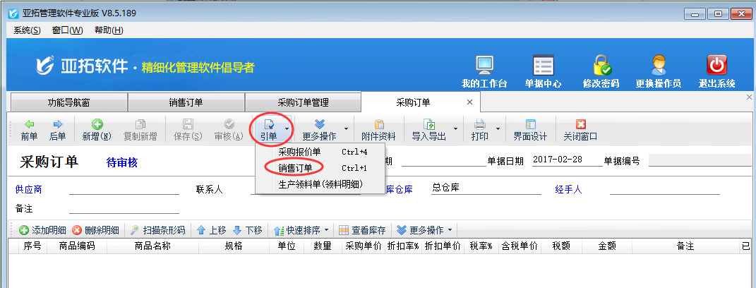 ????采購訂單引用銷售訂單明細功能是V8.5.189版本增加的功能,更新最新版本即可使用相應功能。