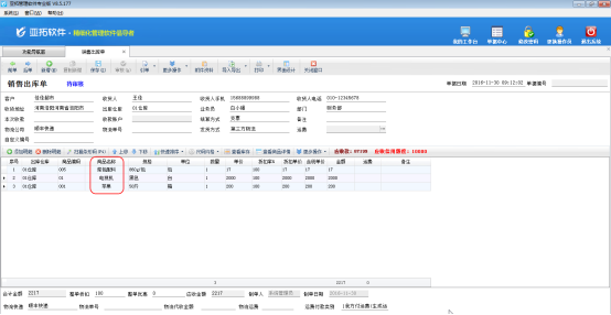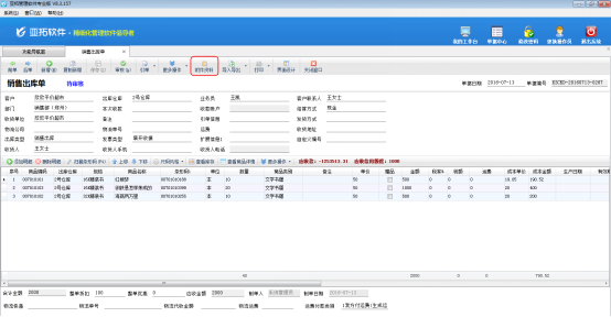????亞拓管理軟件和紅管家送貨單軟件在新增或修改業務單據時,都支持對單據明細進行快速排序。軟件中單據明細列表默認按照選擇商品的先后順序進行排序,如果用戶想根據商品名稱或者商品編碼對單據明細進行排序,可以使用“快速排序”功能。下面我們以亞拓管理軟件專業版的銷售出庫單為例介紹一下對單據明細快速排序的操作方法。