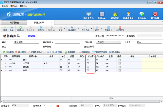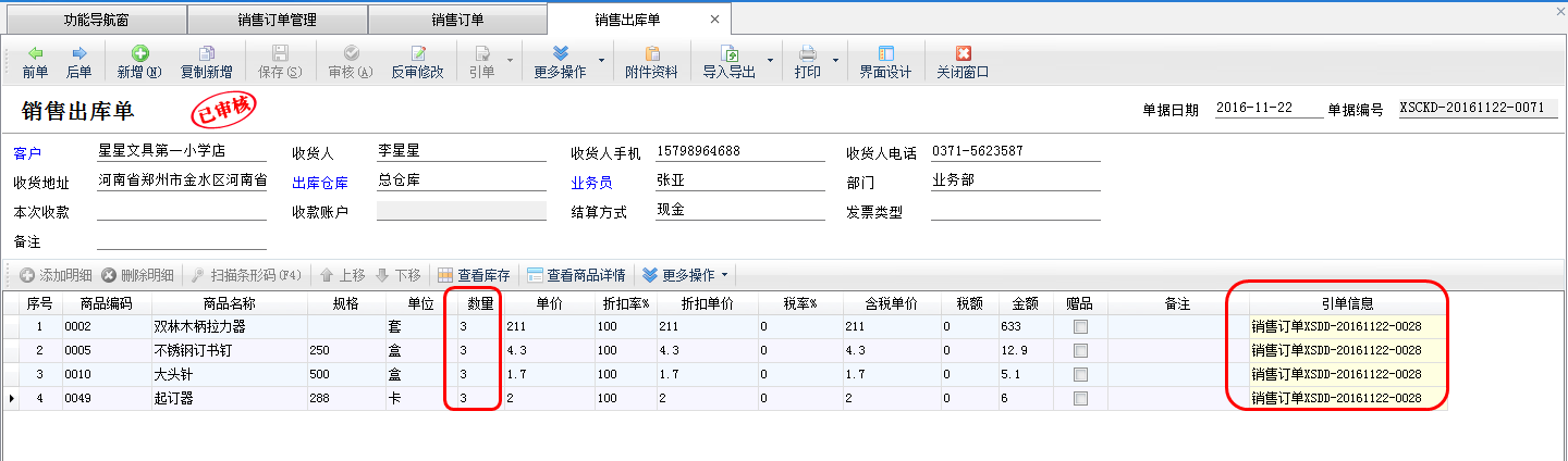 ????銷售單列表中批量審核功能和采購單列表一致,不再贅述。