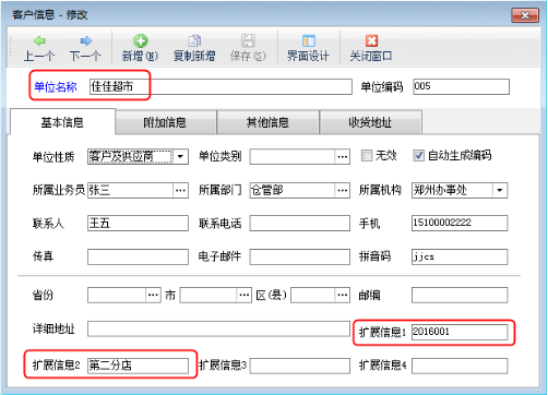 ????“可作為查詢條件”指精確查詢,需要查詢內容和實際內容輸入一致,如需要模糊查詢,可以在界面設計中把“擴展信息”作為模糊查詢條件。