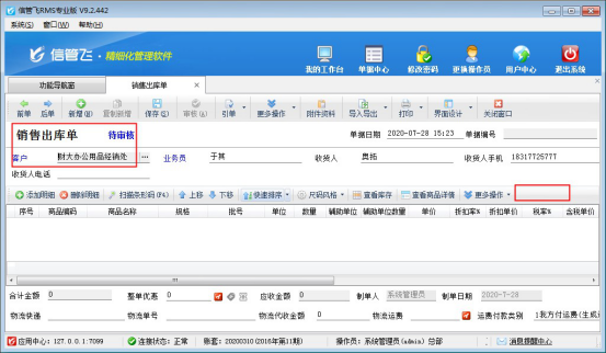 ????信管飛倉庫管理軟件、信管飛RMS軟件等支持新增多個操作員并可設置操作員權限,有用戶需要開銷售單需要多人審核,軟件支持設置多級審核,本文以“信管飛倉庫管理軟件”為例示范下單據多級審核功能如何使用?