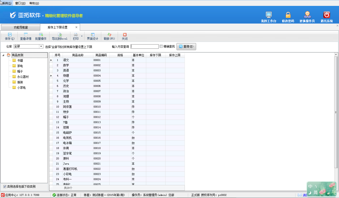 ????亞拓管理軟件是基于自主研發的亞拓基礎應用平臺開發的中小企業ERP軟件(精細化管理軟件、進銷存管理軟件、記賬軟件),包括采購管理、銷售管理、庫存管理、往來賬管理、財務管理、出納管理等業務管理功能,并支持分支機構管理、生產管理、委外加工管理、客戶關系管理、工資管理、績效管理等擴展功能模塊。