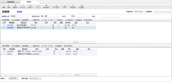 ????信管飛倉庫管理軟件業務單據的界面分為單據主體及單據明細兩部分,如圖1所示,單據默認值功能是對單據主體的部分數據項進行設置默認值,業務單據設置默認值后,每次新增單據時會顯示已設置的數據項默認值。