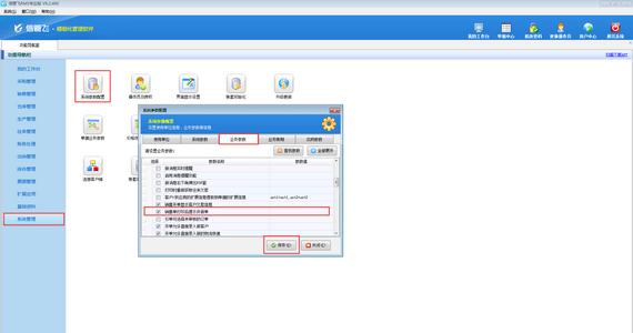 ????在功能導航窗點擊“系統管理”—》“系統參數配置”—》“業務參數”,進入“業務參數”配置界面,在庫存管理參數中找到并勾選參數“允許0成本出入庫”,之后點擊“保存”,如下圖所示: