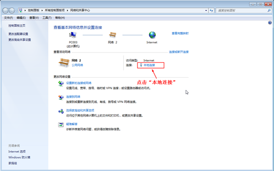 ????①首先在電腦右下角找到網(wǎng)絡(luò)連接的符號,點(diǎn)擊會出現(xiàn)當(dāng)前網(wǎng)絡(luò)連接的提示,如圖所示,點(diǎn)擊“打開網(wǎng)絡(luò)和共享中心”會出現(xiàn)如圖所示的界面,點(diǎn)擊“本地連接”。
