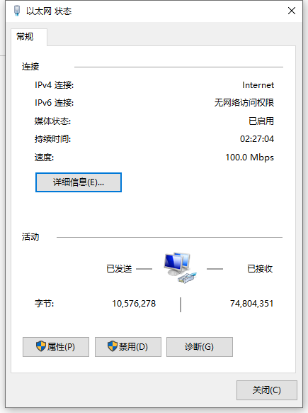 ????②以太網(wǎng)狀態(tài)如圖所示,點(diǎn)擊“詳細(xì)信息”按鈕,會出現(xiàn)如圖所示的網(wǎng)絡(luò)連接詳細(xì)信息,此時(shí)需要記一下“IPv4地址”、“IPv4子網(wǎng)掩碼”、“IPv4默認(rèn)網(wǎng)關(guān)”和“IPv4 DNS服務(wù)器”的信息,后面固定IP地址時(shí)需要用到。