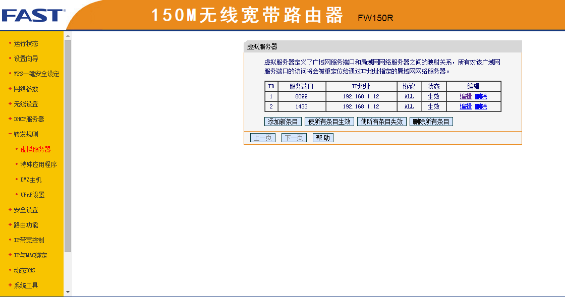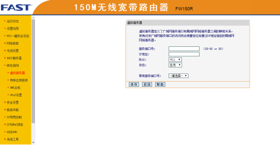 ????①如果主機(jī)電腦是通過路由器上網(wǎng),就需要在路由器上配置端口映射。(這一步驟需要對路由器進(jìn)行配置,圖1和圖2為迅捷FAST 150M路由器的設(shè)置方法。每種路由器的配置稍有不同,可在購買動態(tài)IP解析服務(wù)后,聯(lián)系我們客服幫助進(jìn)行遠(yuǎn)程配置)
