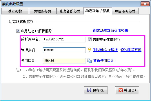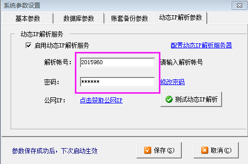 ????②主機(jī)電腦配置動態(tài)IP解析服務(wù)參數(shù),并定時(shí)將公網(wǎng)IP地址信息發(fā)送給亞拓軟件云服務(wù)器。