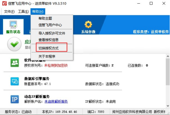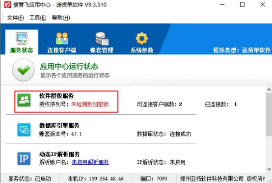 ????加密鎖設(shè)備如果長時(shí)間使用可能有損壞情況,目前我們支持加密鎖授權(quán)更換為授權(quán)形式授權(quán),授權(quán)目前免費(fèi)更換。本文以“信管飛送貨單軟件”為例,示范下如何變更授權(quán)形式?