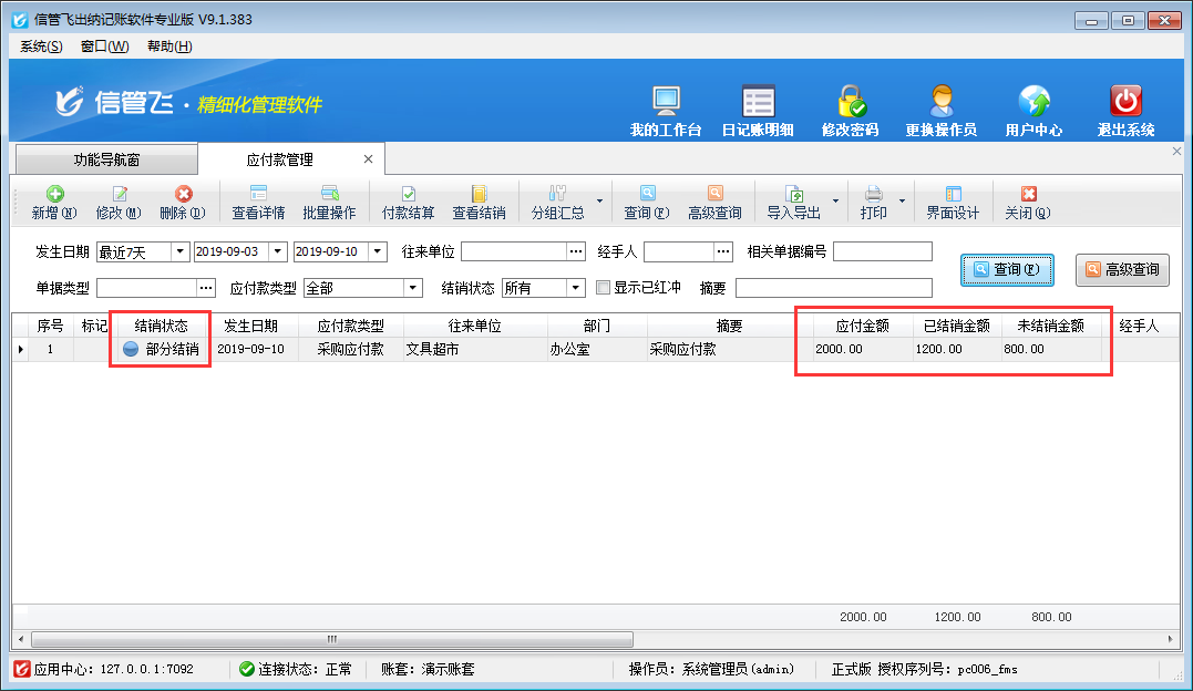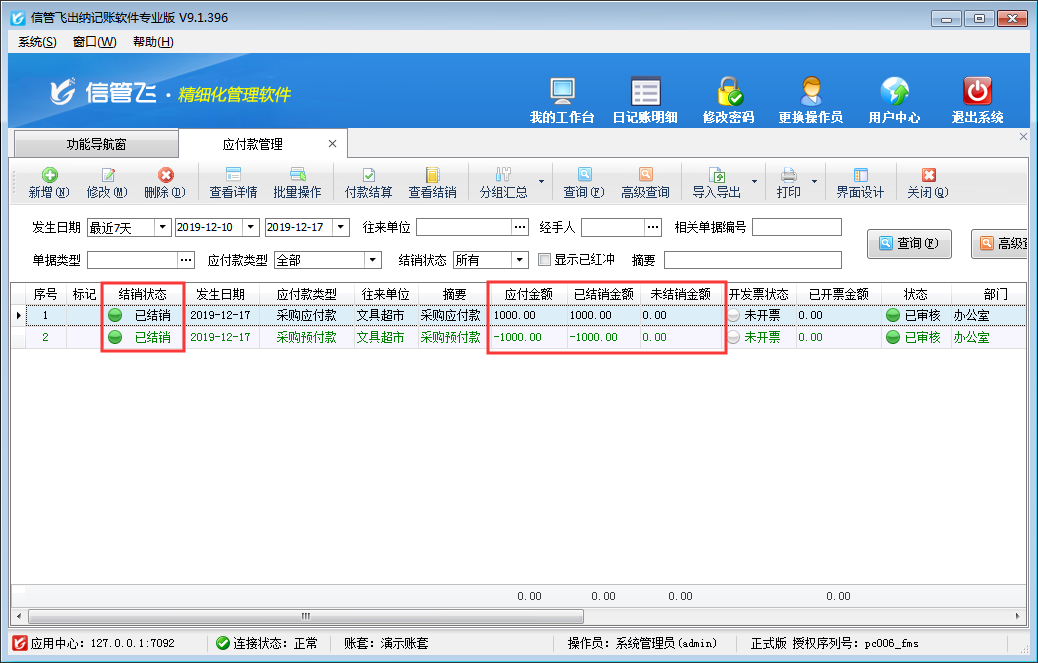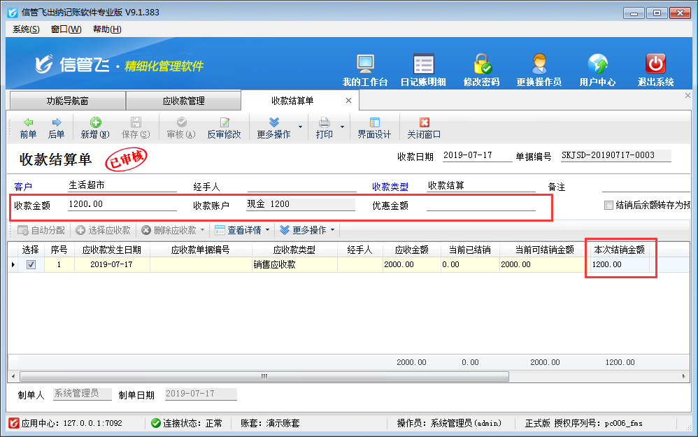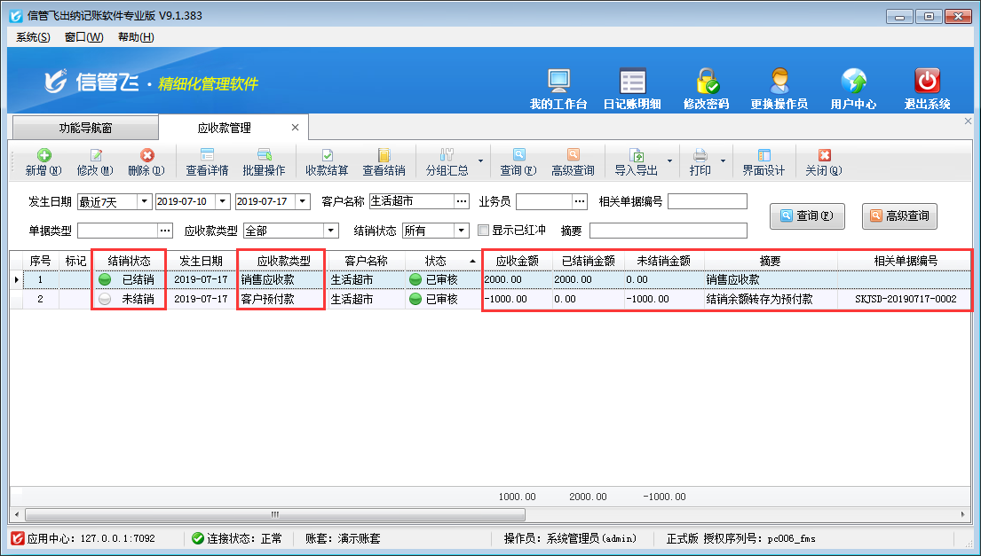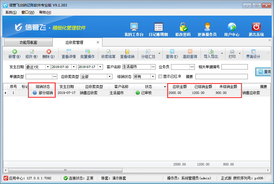 ????結(jié)算單審核完成后會(huì)影響應(yīng)收款的結(jié)銷狀態(tài)。如果需要按單據(jù)進(jìn)行分批結(jié)銷可參考此文章:信管飛RMS 軟件如何按單據(jù)部分結(jié)銷應(yīng)收款?