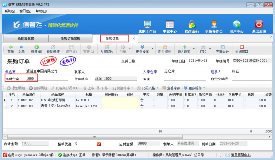 ????信管飛RMS星光版、標(biāo)準(zhǔn)版、專業(yè)版支持把采購(gòu)貨品付部分定金給供應(yīng)商的金額錄入到軟件中,在實(shí)際付款給供應(yīng)商的時(shí)候可以扣除預(yù)付的定金金額,本文以“信管飛RMS專業(yè)版”為例示范下采購(gòu)預(yù)付款如何沖抵采購(gòu)應(yīng)付款?