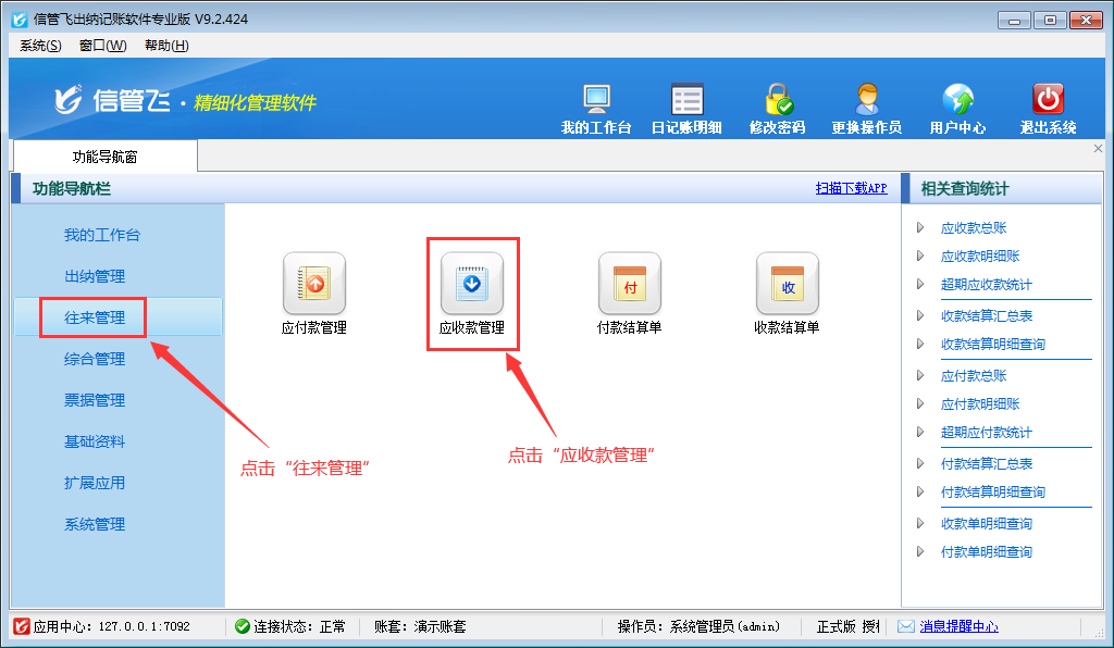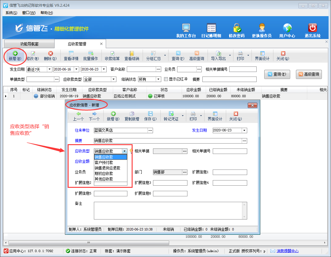 ????信管飛出納記賬軟件可登記客戶和供應(yīng)商的應(yīng)收應(yīng)付款記錄,對(duì)于用戶出現(xiàn)部分收款的情況,軟件中如何處理?本文以“信管飛出納記賬軟件”為例進(jìn)行示范下如何部分結(jié)銷應(yīng)收款?