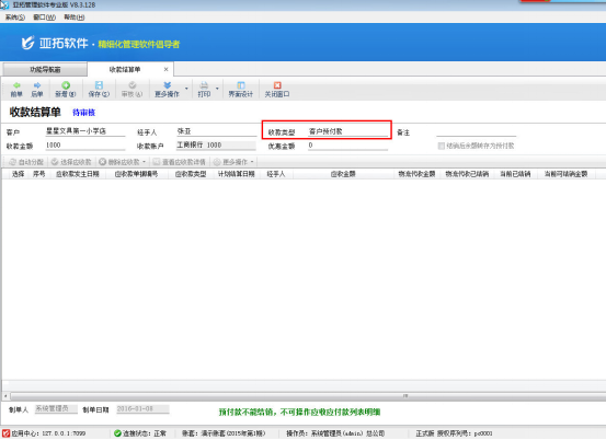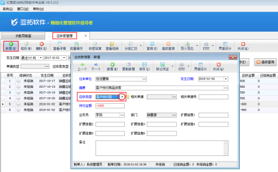 # 6.3.32 亞拓管理軟件中如何錄入客戶預(yù)付款