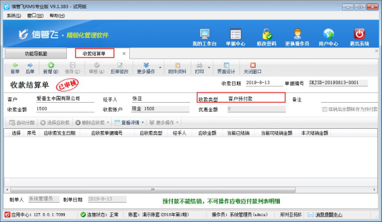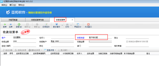 ????2、在收款結(jié)算單中錄入客戶預(yù)付款