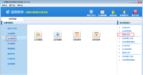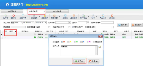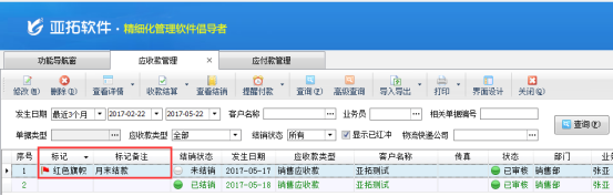 ????亞拓管理軟件和紅管家倉(cāng)庫(kù)管理軟件都可以對(duì)應(yīng)收款管理、應(yīng)付款管理進(jìn)行標(biāo)記備注。送貨單軟件的應(yīng)收款管理中也可以對(duì)應(yīng)收款進(jìn)行標(biāo)記備注。下面我們以亞拓管理軟件專業(yè)版為例,介紹對(duì)應(yīng)收款管理標(biāo)記備注的操作步驟(應(yīng)付款和應(yīng)收款操作一致)。