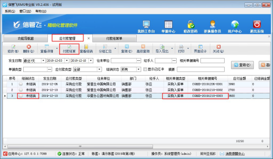 # 6.3.26 信管飛RMS軟件如何對(duì)應(yīng)付款進(jìn)行付款結(jié)算?