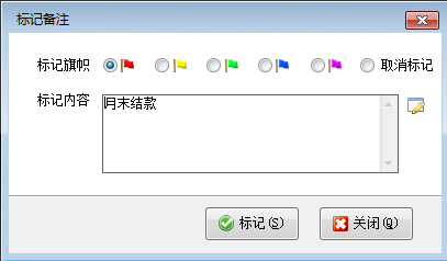????在“標(biāo)記備注”窗口選擇標(biāo)記旗幟,錄入標(biāo)記內(nèi)容,然后點(diǎn)擊“標(biāo)記”按鈕。如圖2所示: