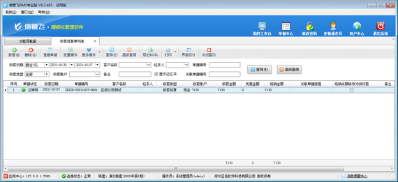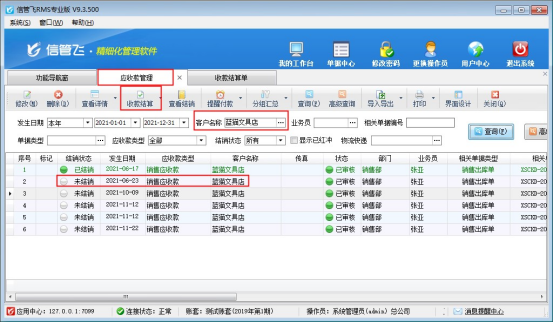 # 6.3.27 信管飛RMS軟件中如何對(duì)應(yīng)收款進(jìn)行收款結(jié)算?