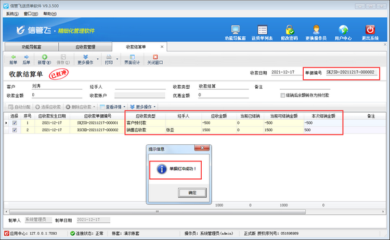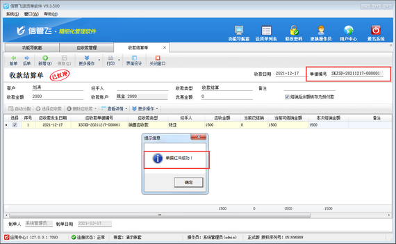 ????信管飛軟件包括信管飛RMS軟件、信管飛出納記賬軟件、信管飛送貨單軟件(送貨單軟件只有應(yīng)收款),支持對(duì)應(yīng)收應(yīng)付款進(jìn)行收付款結(jié)算操作,方便用戶查看收付款情況。對(duì)于客戶在結(jié)算時(shí)保存不了結(jié)算單,本篇文章以收款結(jié)算單進(jìn)行示范下如何解決。