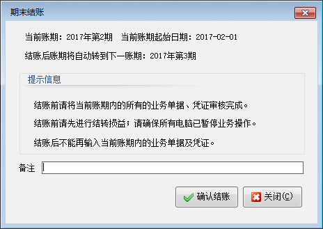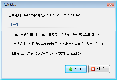 ????2、結賬前請先在本賬期內進行“結轉損益”操作。