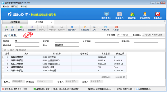 ????亞拓管理軟件專業版包含的有財務處理模塊,其中結轉損益是指在期末,將損益類科目的余額全部結轉到“本年利潤”中,并生成相應的會計憑證,結轉后,損益類科目余額為零的過程。本篇文章我們來介紹一下結轉損益功能如何使用?