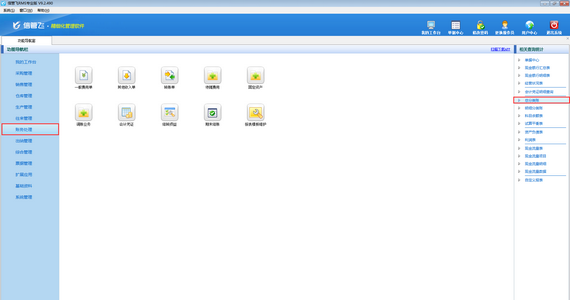 ????在功能導航窗點擊財務管理界面,右側相關查詢統計中點擊“總分類賬”,打開總分類賬界面。如下圖所示: