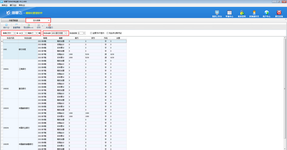 ????總賬可以統計多期的總分類賬,并可按科目級別進行分級顯示。以賬期2021年6期至7期,科目“1002銀行存款”為統計條件,統計的情況如下圖所示: