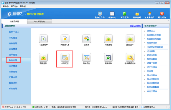 ????歡迎下載試用這款可以統計總賬的RMS軟件:信管飛RMS軟件。