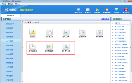 ????(5)委外業務還可以管理各種委外費用、費用付款結銷、費用攤銷,分別開“委外加工費用單”、“委外費用結算單”、“委外費用分配單”進行處理。
