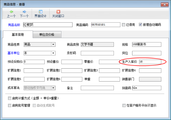 ????入庫單價:進入倉庫的成本價,軟件默認取商品信息中的“生產入庫價”,也可以設置為根據原料金額和直接費用等核算出成本價。