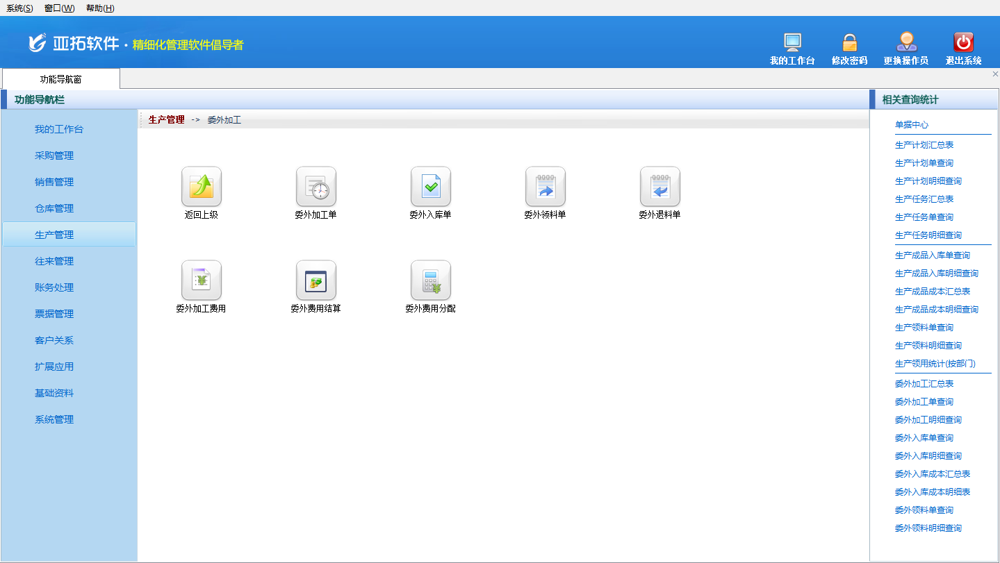 # 6.6.9 亞拓管理軟件中如何對委外加工進行管理?