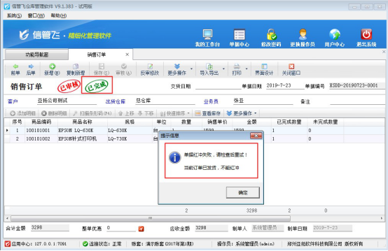 信管飛倉庫管理軟件、信管飛RMS軟件、信管飛送貨單軟件都支持開銷售訂單,銷售單可以引用訂單進行發貨完成,對已發貨完成的訂單軟件支持設置不允許修改和紅沖單據,以“信管飛倉庫管理軟件”為例,示范下如何設置訂單發貨后不允許修改和紅沖。 演示視頻觀看鏈接:倉庫管理軟件如何設置訂單發貨后不允許修改和紅沖? 在功能導航窗點擊“系統管理”→“系統參數設置”→“業務參數”可以打開“業務參數”配置界面,在業務單據相關參數內打鉤啟用“已發貨的訂單不可修改不可紅沖”參數,