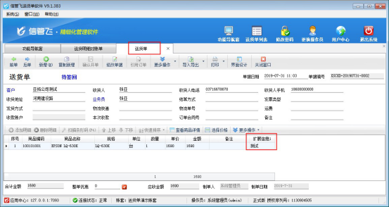 信管飛送貨單軟件、信管飛RMS軟件、信管飛倉庫管理軟件等支持在送貨單匯總對賬單(采購單、銷售單匯總表)、送貨明細對賬單(采購單、銷售單明細查詢)、訂單明細查詢(采購訂單、銷售訂單明細表)中設置擴展信息為查詢條件,可匯總單據明細或者單據主體項中擴展信息內容。 以“送貨明細對賬單”為例,示范下如何在界面設計中配置。功能導航窗選擇“業務處理”在右側的查詢統計下打開“送貨明細對賬單”進入送貨明細對賬單界面,點擊“界面設計”按鈕,在打開的界面設計窗口中找到“擴展信息1”數據項,勾選顯示并在可查詢處設置“可作