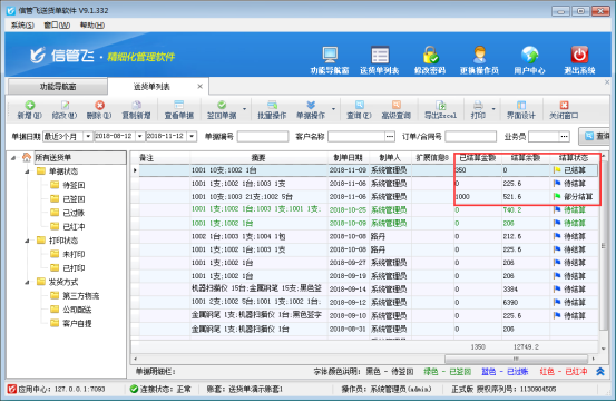 信管飛送貨單軟件、信管飛rms軟件等都支持開(kāi)銷(xiāo)售單直接生成對(duì)應(yīng)的應(yīng)收款。對(duì)已開(kāi)過(guò)的送貨(銷(xiāo)售)單會(huì)自動(dòng)存在軟件中,可以在送貨單(銷(xiāo)售單)列表中進(jìn)行查看。生成的應(yīng)收款結(jié)銷(xiāo)操作可以到應(yīng)收款管理中進(jìn)行結(jié)銷(xiāo),為了更清晰查看到當(dāng)前單據(jù)是否已結(jié)算,軟件新增功能可以在送貨單(銷(xiāo)售單)列表界面顯示出當(dāng)前結(jié)算狀態(tài)、已結(jié)算金額以及結(jié)算余額。 以“信管飛送貨單軟件”為例,示范下如何在送貨單列表界面顯示結(jié)算狀態(tài)。 首先需要啟用參數(shù)“收付款結(jié)算單審核后更新業(yè)務(wù)單據(jù)的結(jié)銷(xiāo)狀態(tài)”
