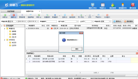 在電腦上打印送貨單需要用到送貨單打印軟件,本文我們以信管飛送貨單軟件為例來介紹一下如何使用信管飛送貨單軟件在電腦上打印送貨單? 新開送貨單: 登錄軟件,在功能導航窗,點擊“業務處理”—》“新開送貨單”可以打開送貨單填開界面,在送貨單填開界面錄入客戶相關信息以及單據明細內容后點擊“確認開單”按鈕即可保存送貨單,如下圖所示: 快速打印送貨單: 送貨單確認開單后,即可打印送貨單,在送貨單界面工具欄