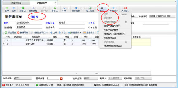 信管飛RMS、信管飛倉庫管理軟件等默認開單保存后即可打印,部分用戶想設置在單據未審核之前不允許打印,如何設置呢?本篇文章我們以信管飛倉庫管理軟件為例來介紹一下如何設置處于“待審核”的單據不可打印? 在功能導航窗點擊“系統管理”—》“系統參數配置”—》“業務參數”,即可進入到“業務參數”配置界面,在打印參數內找到“處于‘待審核’的單據可打印”參數,把這個參數的勾選去掉,然后保存,如下圖一所示。圖一 系統參數設置界面 配置保存后,在功能導航窗點擊“銷售管理”—》“銷售出庫單”,
